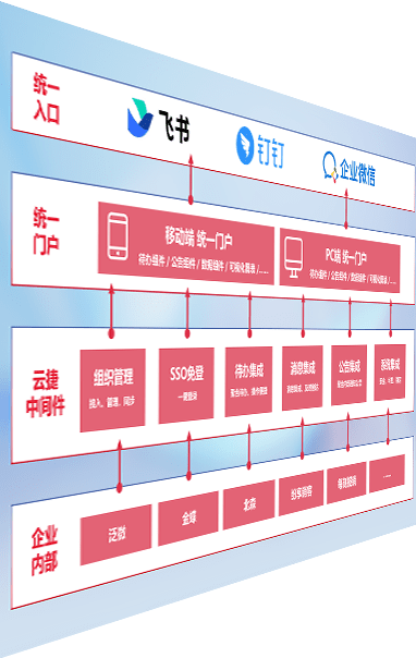 对协作平台提供支持服务,,支持企业应用与协作平台对接,,,,包含组织同步、、消息集成、、、待办集成等。。。支持目前主流的协作平台:钉钉、、、企微和飞书。。。